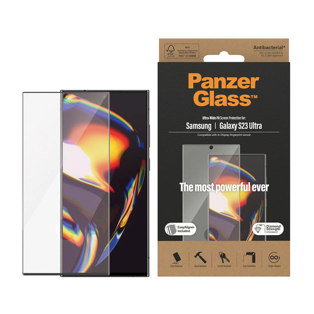 Samsung Galaxy S23 Ultra PanzerGlass AntiBacterial Ultra-Wide Fit Screen Protector - EasyAligner - Diamond Strength - Transparent (DEMO)