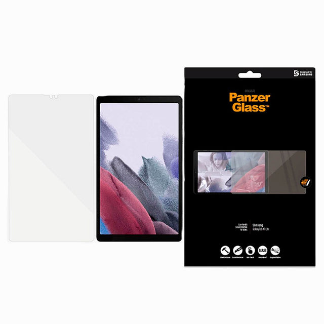 Samsung Galaxy Tab A7 Lite PanzerGlass Edge-To-Edge provides complete protection for the screen. The armoured glass design is optimised to maximise protection and maintain ease of use of the screen.