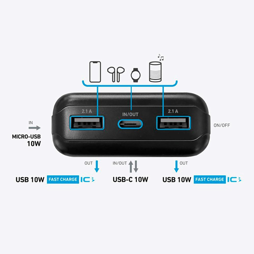 Its two 10W USB ports let you charge up to two devices at the same time, such as a smartphone and a tablet.