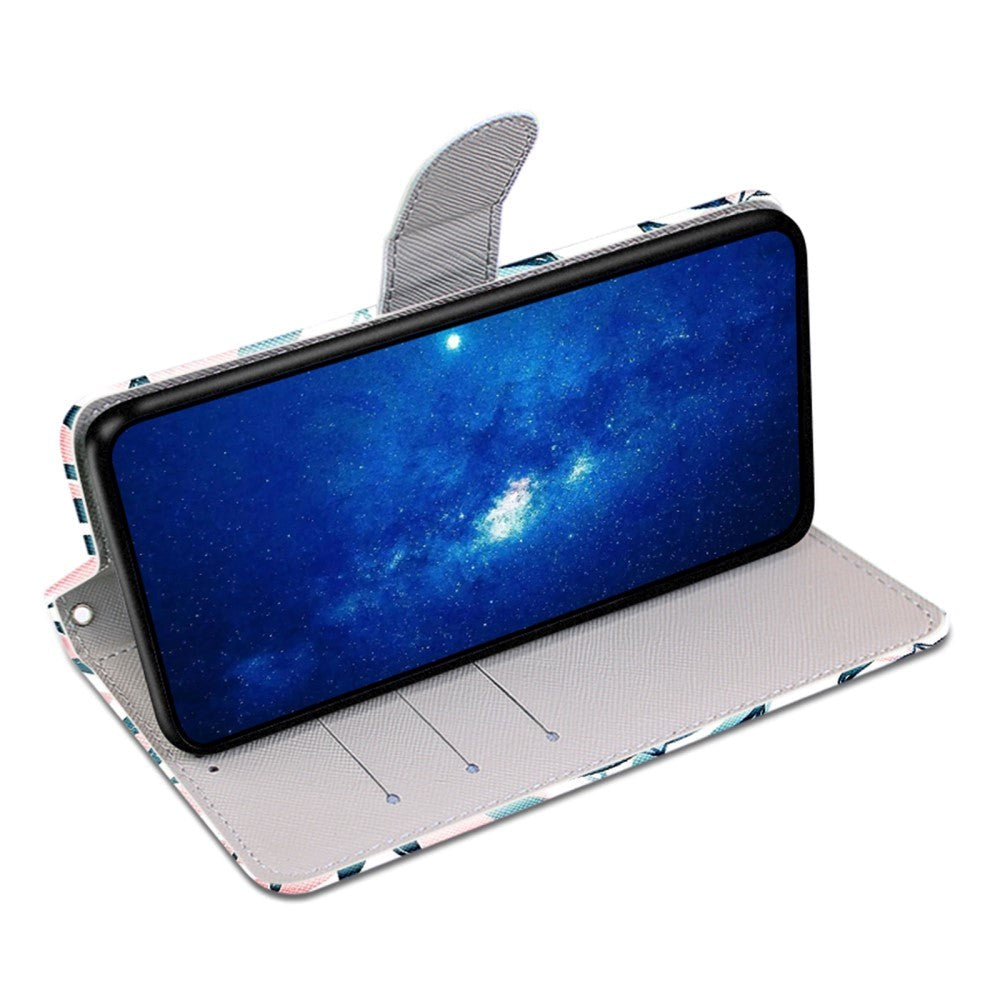 Sony Xperia 10 IV Leather Wallet Case w. Strap - Blue and Pink Leaves