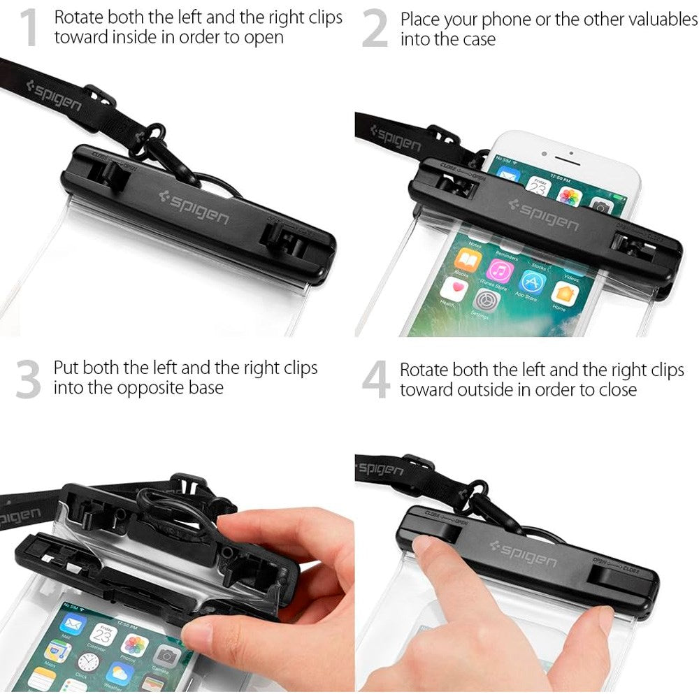Experience the Spigen Universal AquaShield Waterproof Case for your phone, designed for an active lifestyle. This universal, waterproof case protects your device during sports and water activities, allowing you to swim or dive without worry while keeping your phone fully functional.