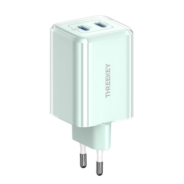 Here you get a powerful GaN fast wall charger from Threekey, with 2 x USB-C ports that can deliver 35W. This charger supports Power Delivery, so you are guaranteed a fast charge.