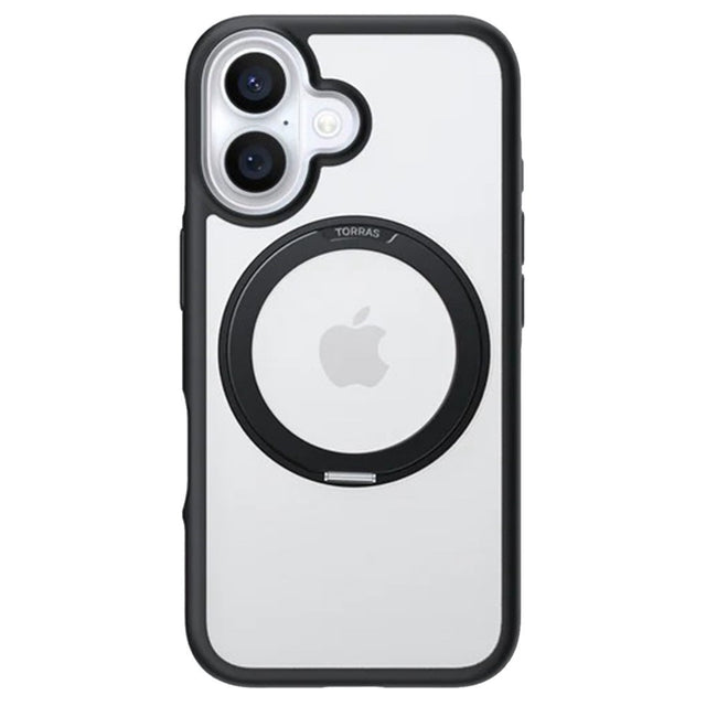 TORRAS iPhone 16 Hybrid Plastic Case with Rotatable Kickstand Ring - MagSafe Compatible - Transparent / Black