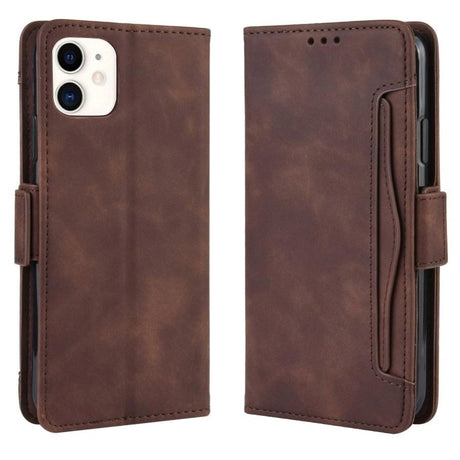 iPhone 12 / 12 Pro Glossy Leather Case w. Large Wallet - Brown