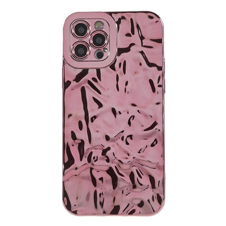 iPhone 12 Pro Shiny Flexible Plastic Back Case - Wavy Design - Rose Gold