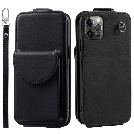 iPhone 12 / 12 Pro Vertical Faux Leather Flip Case with Wallet / Stand Function / Strap - Black