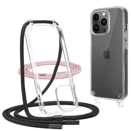 iPhone 12 / 12 Pro Flexair Chain Case w. Black / Pink Strap - Transparent