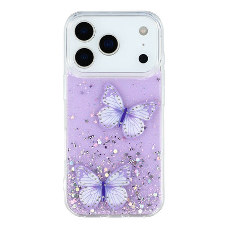 iPhone 17 Pro Max Flexible Plastic Case with Butterflies - Transparent / Purple