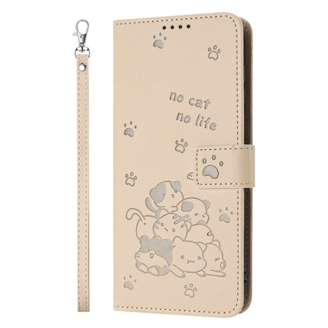 iPhone 16e Faux Leather Flip Case with Cat Pattern - Beige