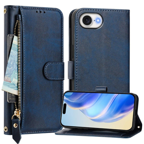 iPhone 16e Faux Leather Flip Case with Wallet & Strap - Blue