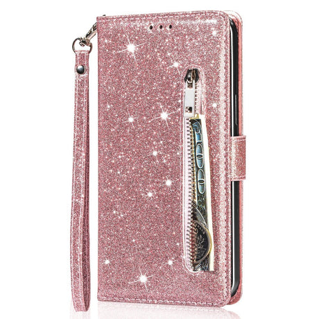 Samsung Galaxy A56 (5G) Glitter Flip Case with Zipper Pocket & Stand Function - Pink