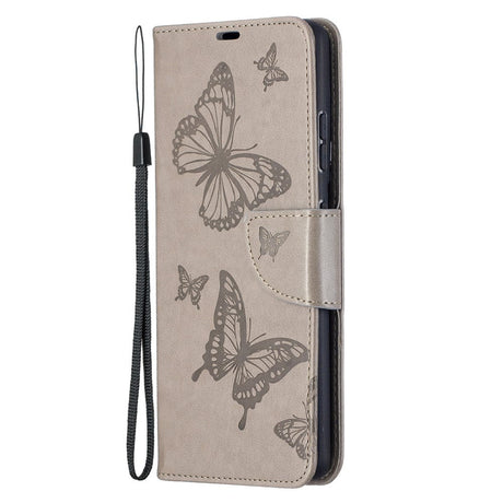 Samsung Galaxy S21 Ultra Leather Wallet Case - Butterflies Imprint - Grey