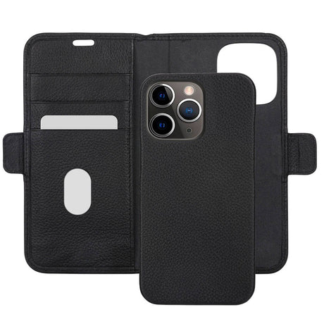 New York 2-in-1 Flip Case - Genuine Leather - iPhone 15 Pro - Black