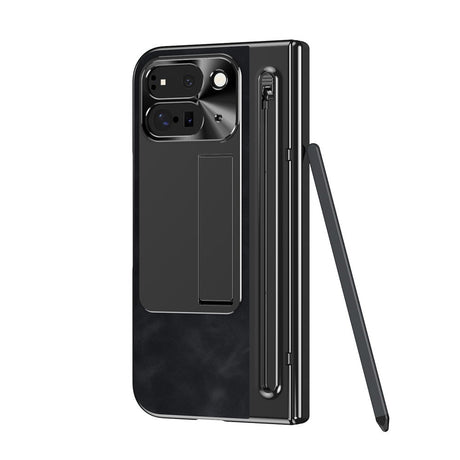Google Pixel 10 Pro Fold Case with Faux Leather Back - Kickstand - Stylus Holder - Black