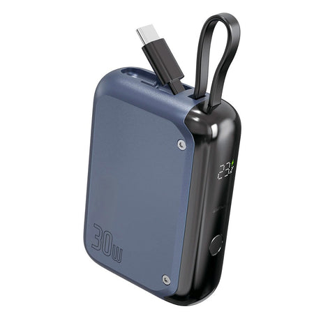 Pocket Powerbank 30W w. Built-In USB-C Cable - 10.000mAh - Blue
