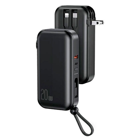3-in-1 Powerbank USAMS 10,000 mAh 20W - USB-C, Lightning and Micro USB - US+EU Plug - Black