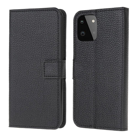 Universal Litchi Leather Flip Case for Smartphones Black - (Max. Phone: 165 x 83 x 18 mm)