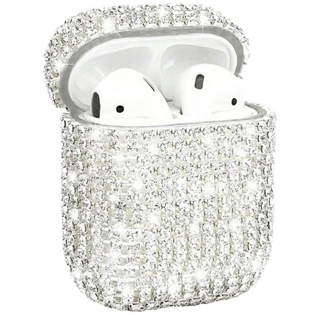 Here is a case for Apple AirPods (1st & 2nd Gen) that effectively protects your earphones and enhances their appearance with beautiful rhinestones that sparkle elegantly in the light!