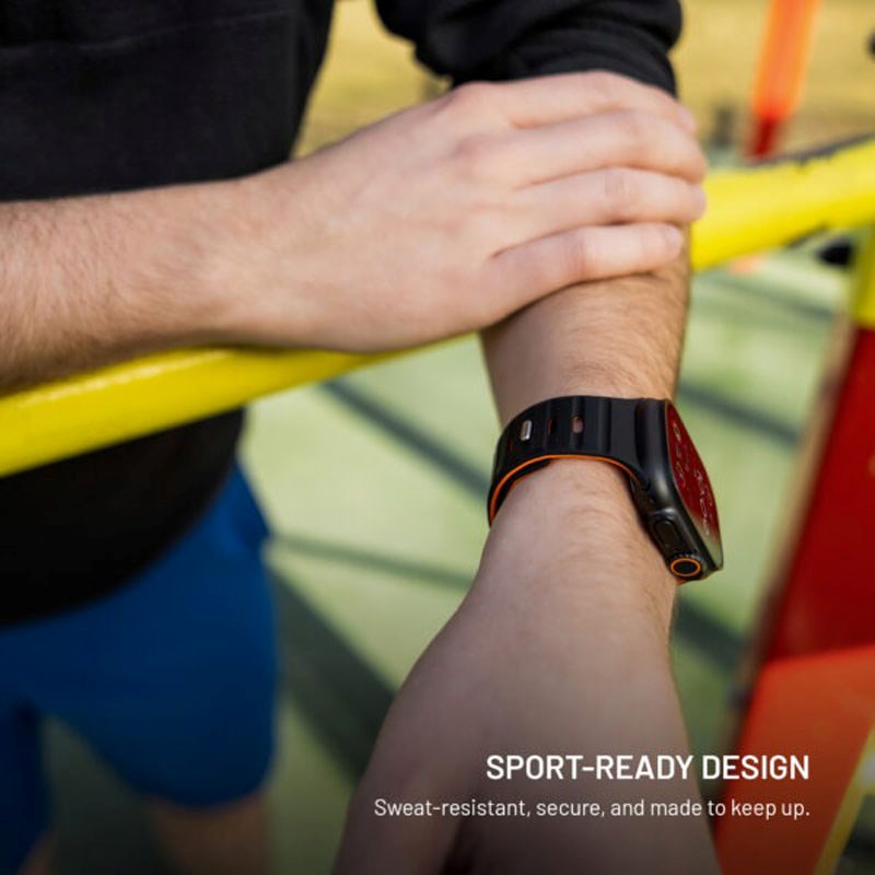 Apple Watch (42/44/SE/45/46/49mm) Fixed Magnetic Silicone Strap - Black / Orange