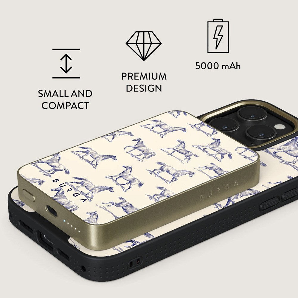 Introducing Burga's MagSafe Power Bank, an elegant and secure solution for charging your devices. With an impressive capacity of 5,000 mAh, you'll have enough power for a full charge of your smartphone, perfect for keeping you going on the go. Choose between magnetic wireless charging or the convenient USB-C port, depending on what suits you best.