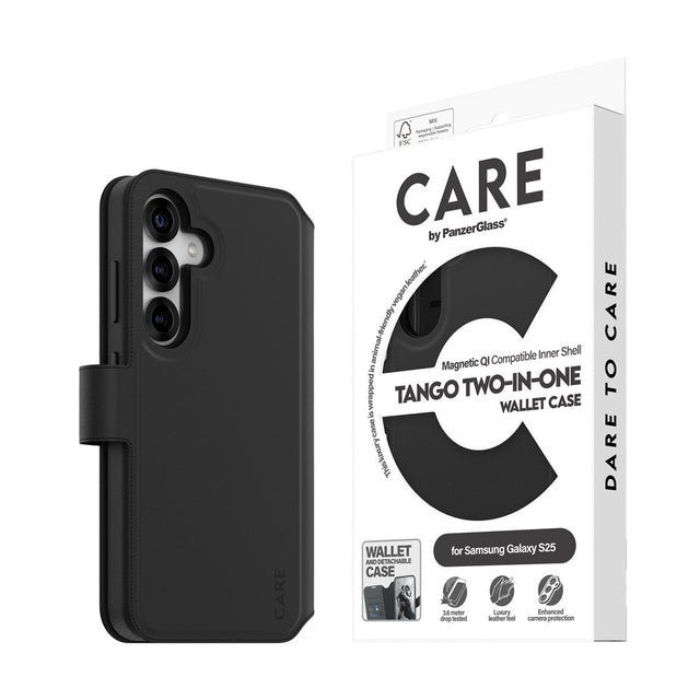CARE by PanzerGlass Samsung Galaxy S25 Feature Tango 2-in-1 Flip Case with Wallet - Qi Compatible - Black