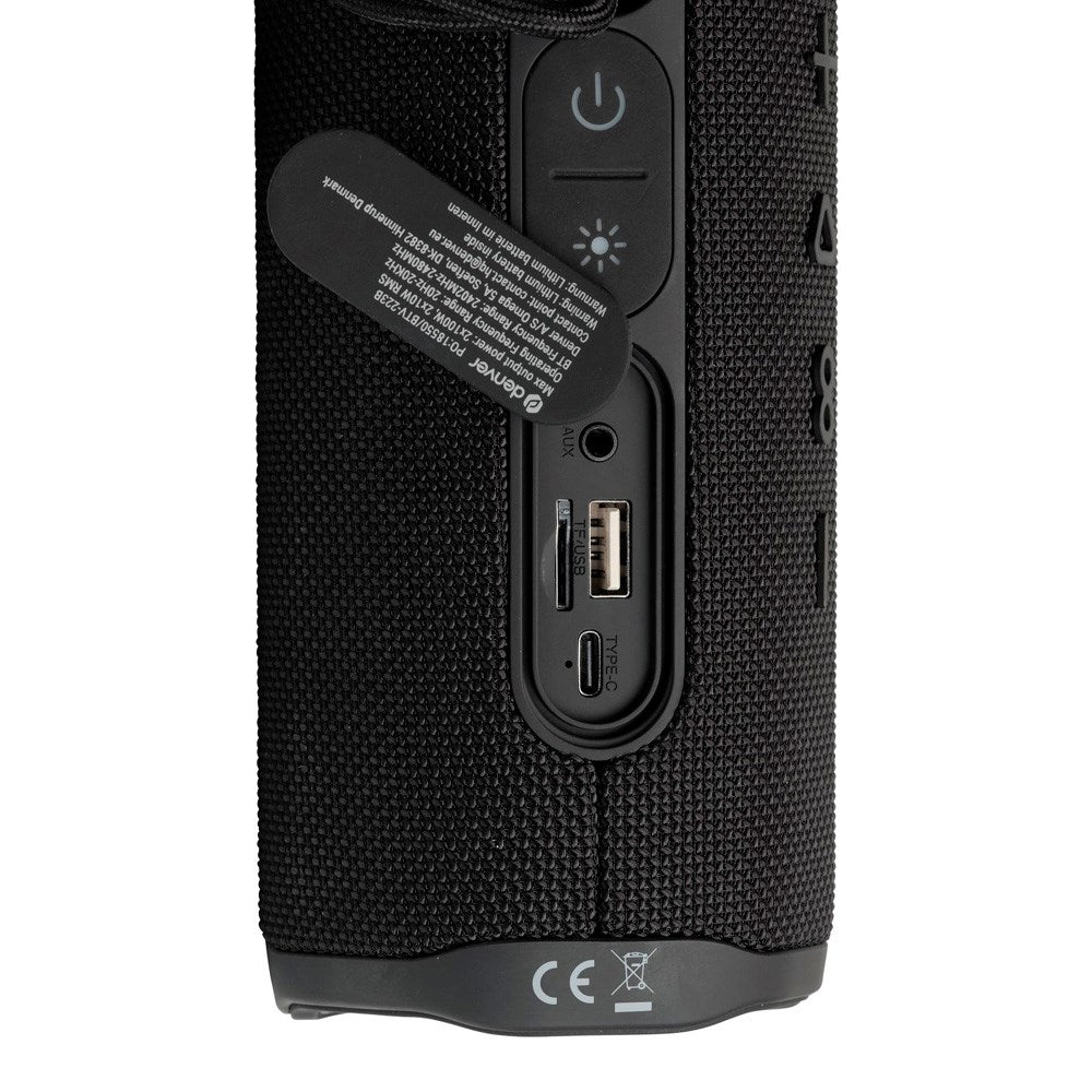 Experience powerful sound wherever you go! This wireless Denver Bluetooth speaker combines robust audio with stylish lighting and durable design.