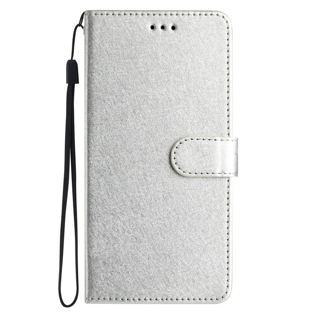 iPhone 12 Pro Max Faux Leather Case with Wallet & Strap - Silver