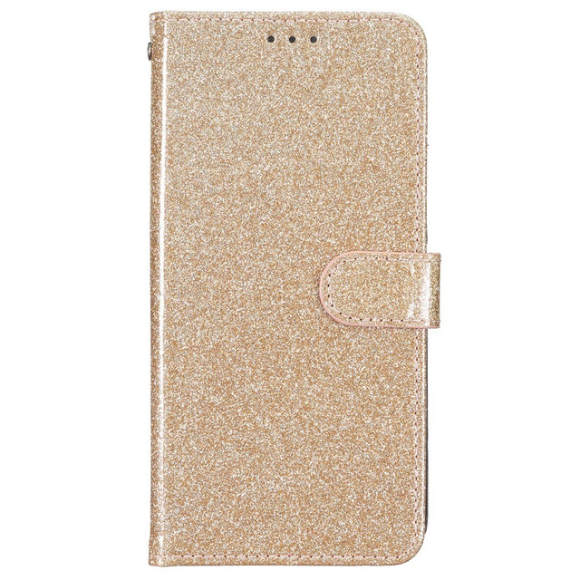 iPhone 16 Pro Leather Flip Case with Wallet and Strap - Glitter - Gold