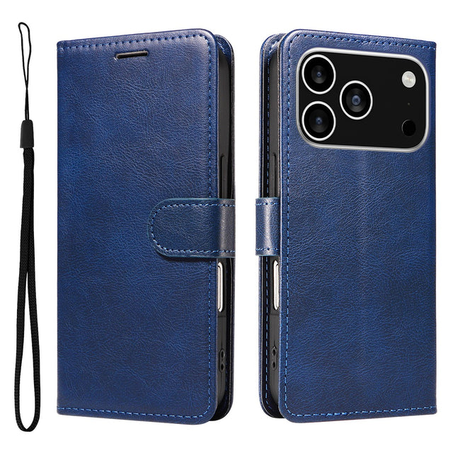 iPhone 17 Pro Faux Leather Case with Wallet & Strap - Blue
