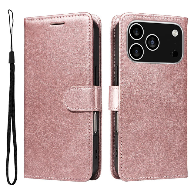 iPhone 17 Pro Faux Leather Case with Wallet & Strap - Rose Gold