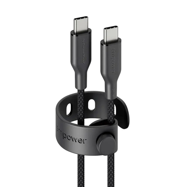 This USB-C to USB-C cable from empower by PanzerGlass is designed for efficient charging and data transfer. With a power output of up to 240W, the cable supports fast charging for compatible devices, including laptops and smartphones. It is a reliable solution for keeping your devices powered. The cable is manufactured with a focus on durability and functionality for daily use.