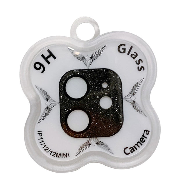 iPhone 12 / 12 Mini / 11 Protective Glass for Camera Lens - Black Glitter