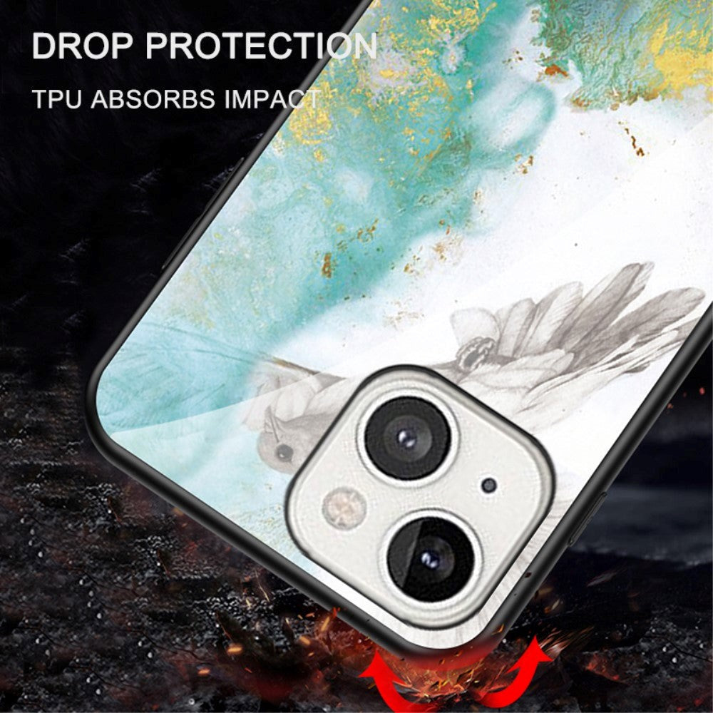 iPhone 13 Mini Flexible Plastic Case w. Glass back - Blue / Green Marble