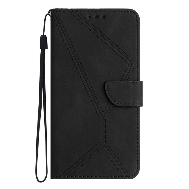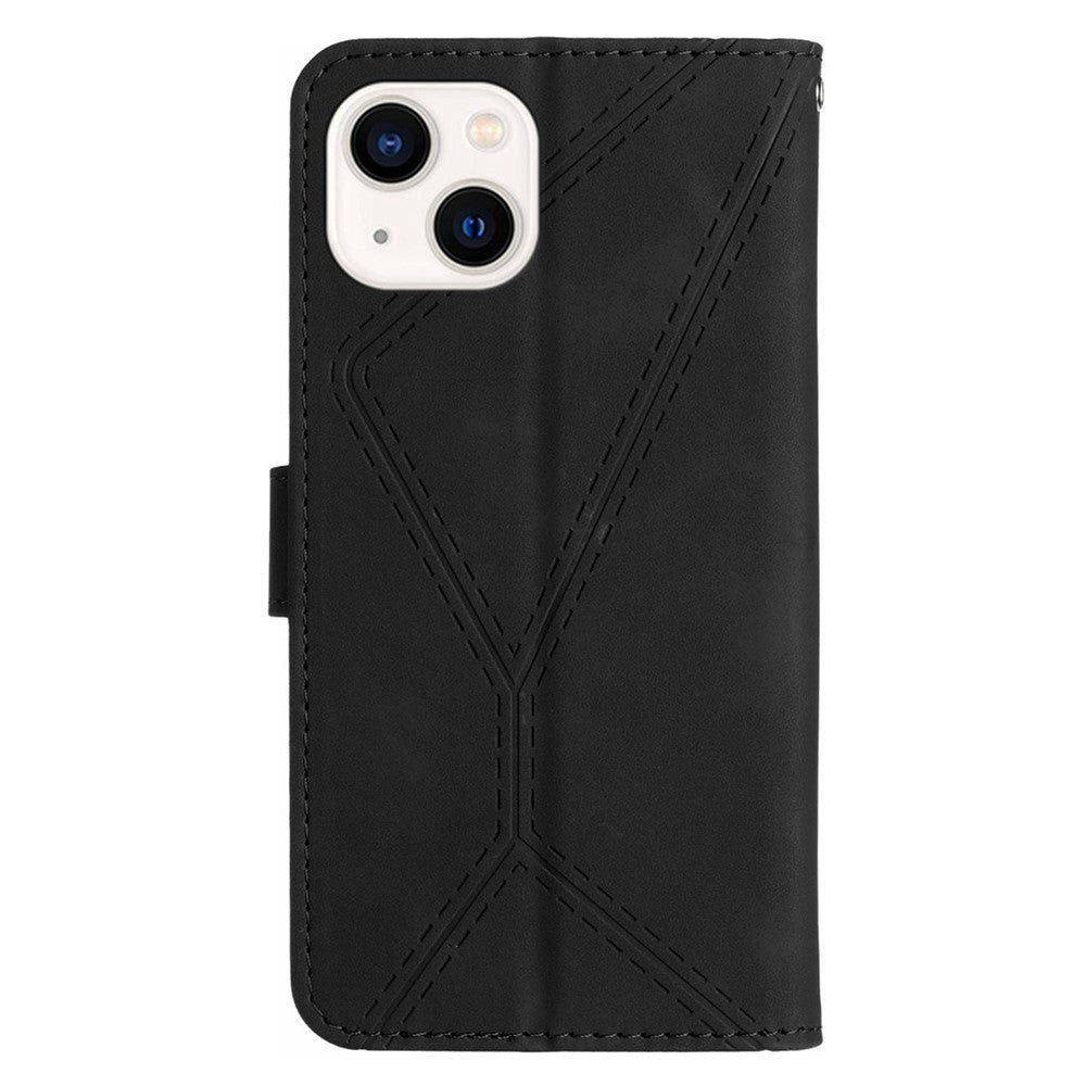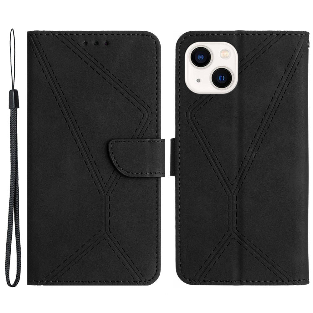 iPhone 15 Leather Case with Wallet and Strap - Black