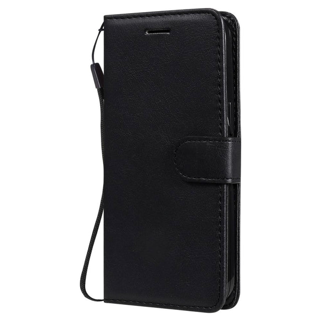 iPhone 15 Leather Flip Case with Wallet and Strap - Black
