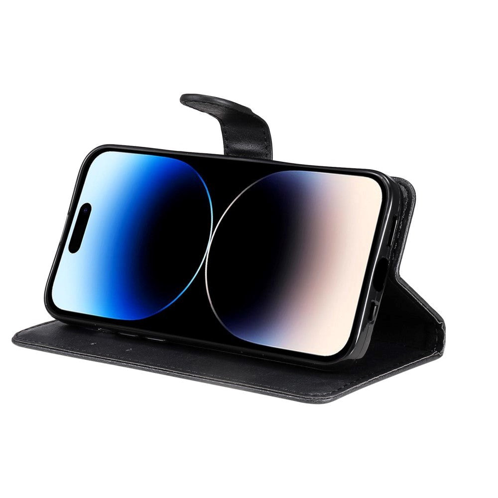 iPhone 15 Pro Leather Flip Case with Wallet and Strap and Wallet - Black