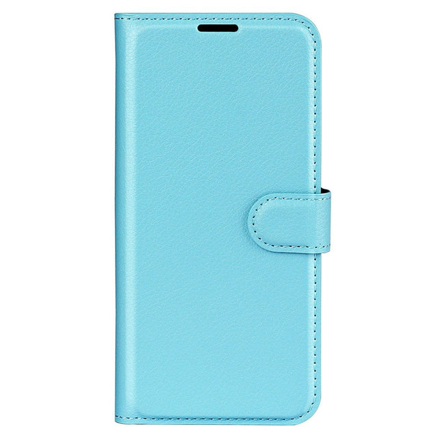 iPhone 15 Pro Litchi Leather Case w. Wallet - Blue is backordered and will ship as soon as it is back in stock.