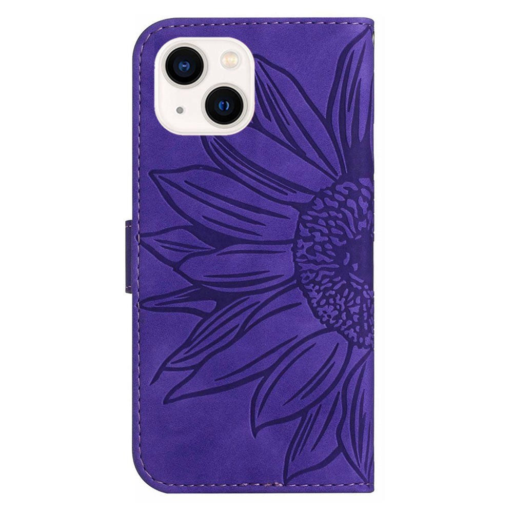 iPhone 15 Wallet Case w. Strap - Sunflower Engraving - Purple