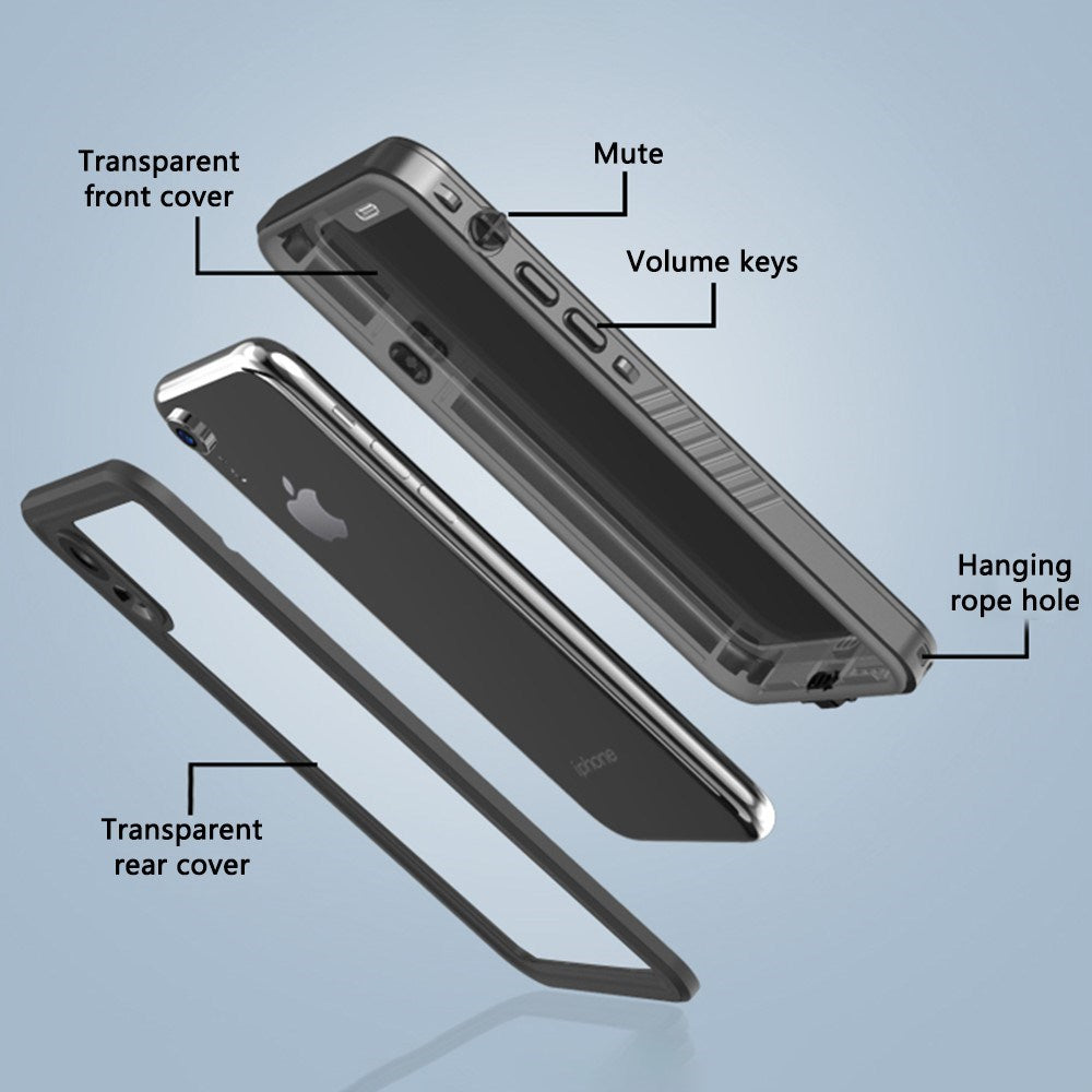 iPhone XR - Waterproof Hybrid Case with Built-in Screen Protector Film - Transparent / Black