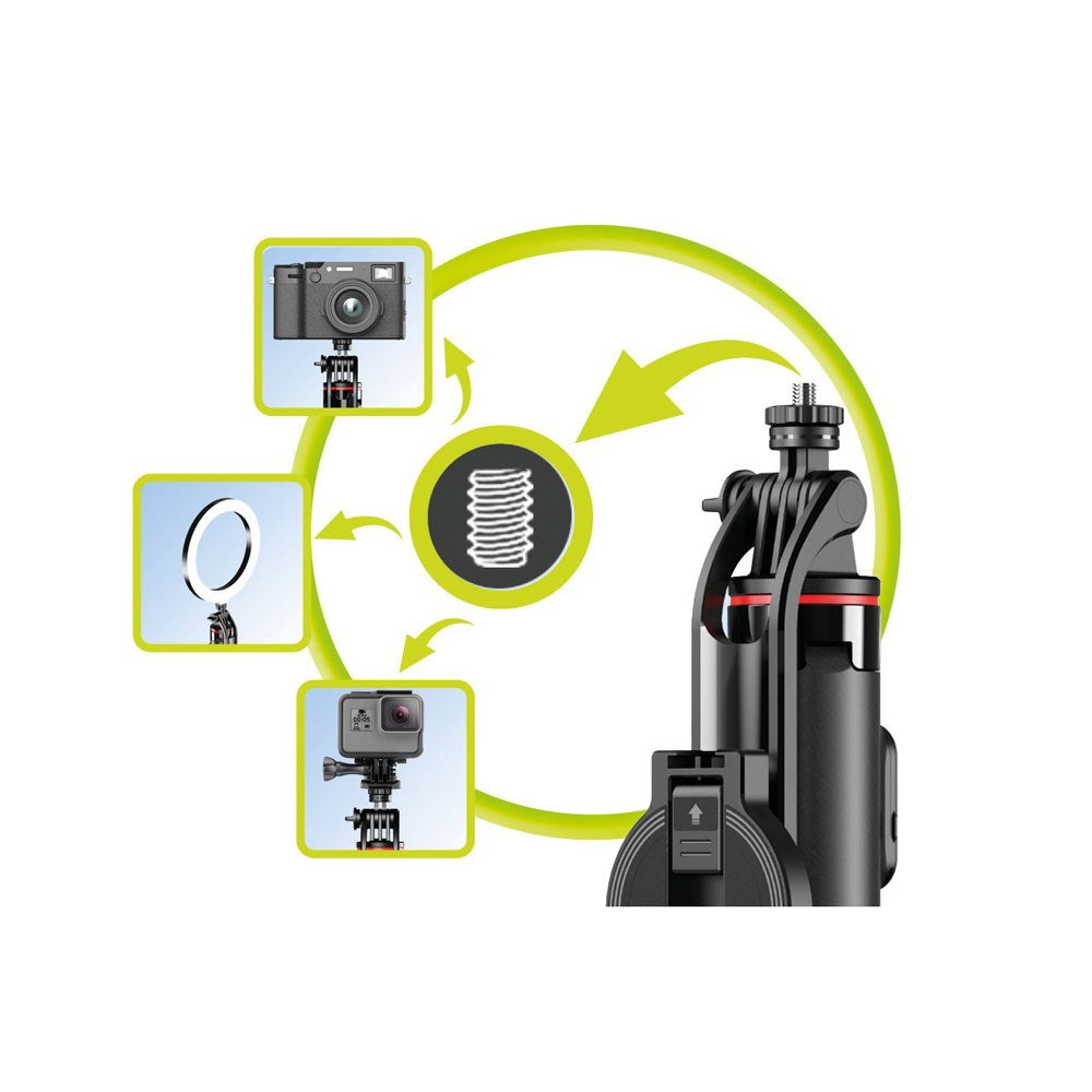 Despite its many features, this 2-in-1 Magnetic Tripod Selfie Stick is compact and lightweight. When folded, it measures just 22.7 cm and weighs 281 g. The Bluetooth remote is elegantly integrated into the handle and can be removed for full remote control.
