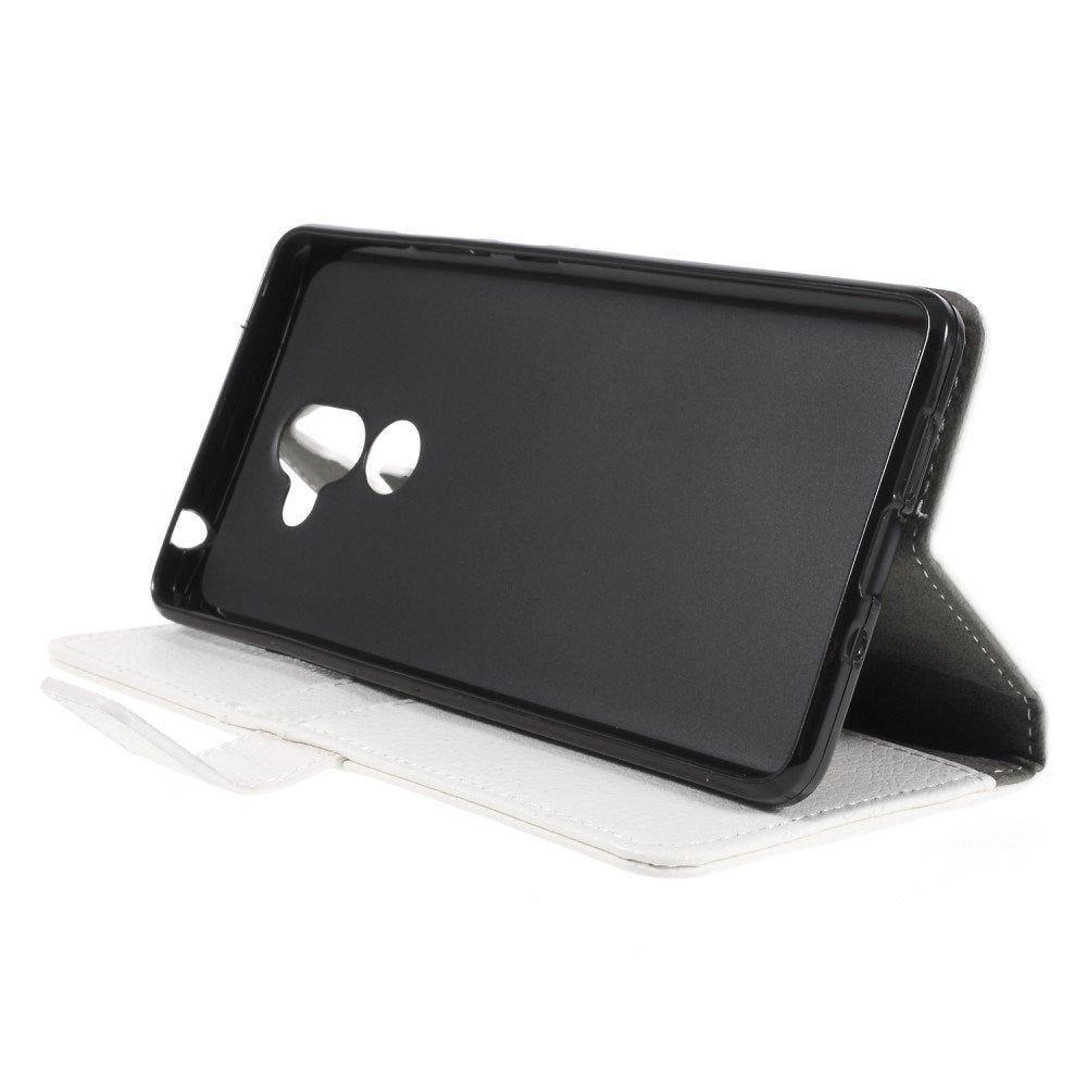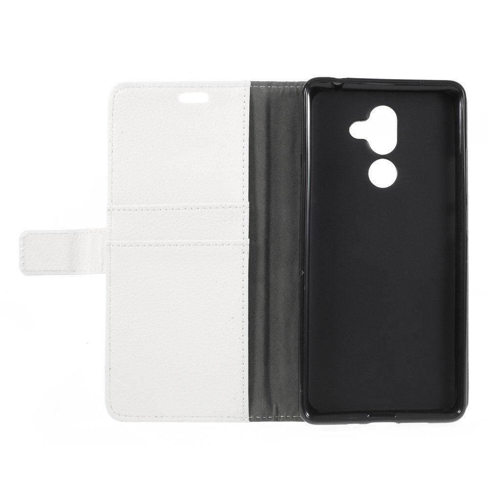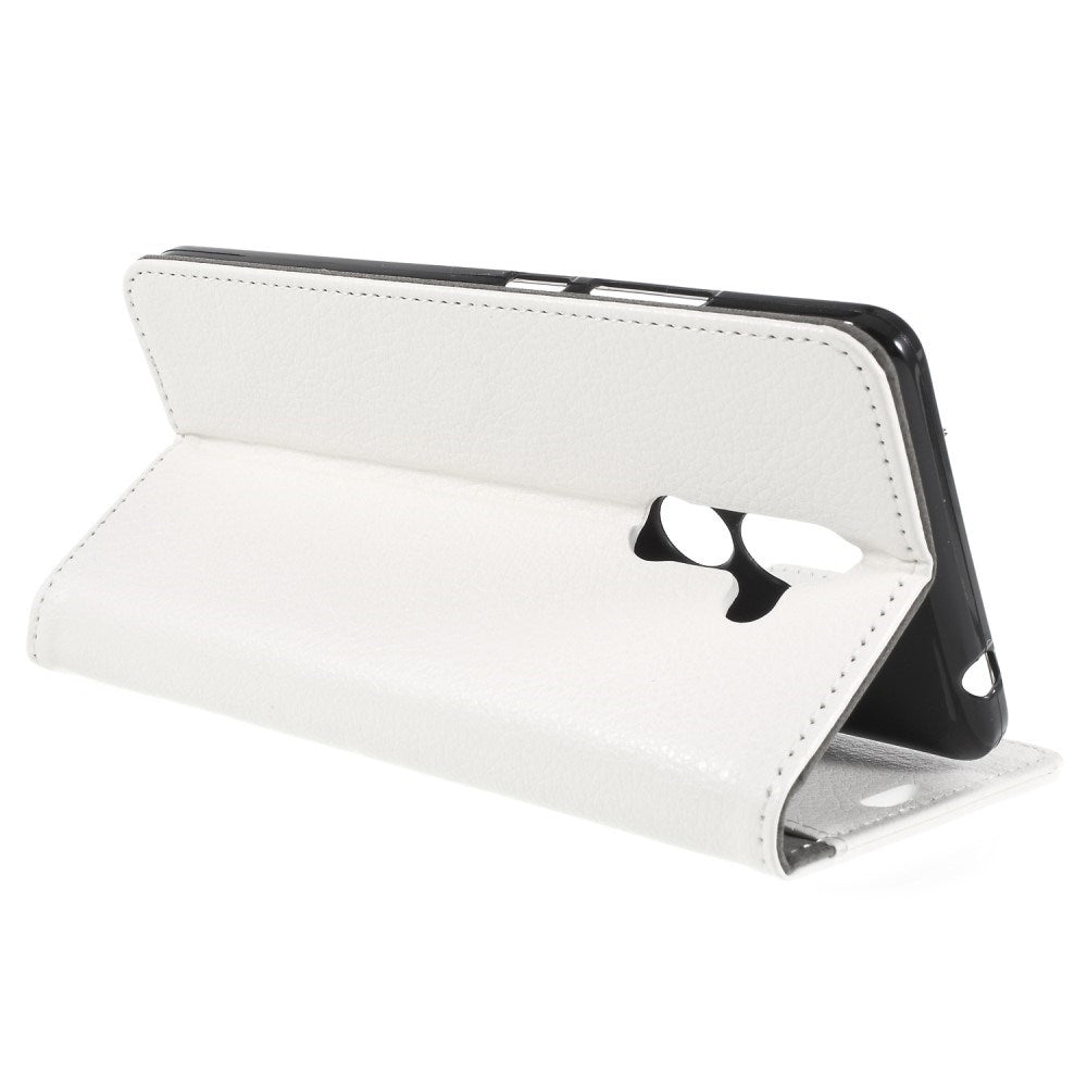 Nokia 7 Plus Litchi PU Leather Flip Case w. Stand and Card Holder - White