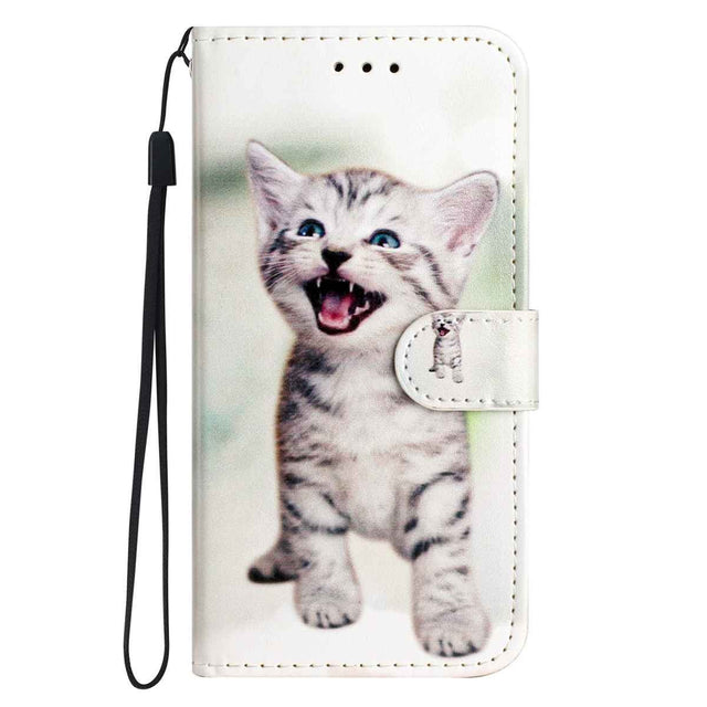 Samsung Galaxy A57 EIDERWOOD Faux Leather Flip Case with Pattern & Strap - Cat