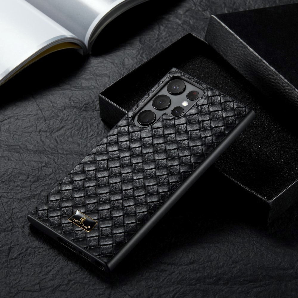 Samsung Galaxy S23 Ultra Leather Covered Plastic Back Cover - Black V1