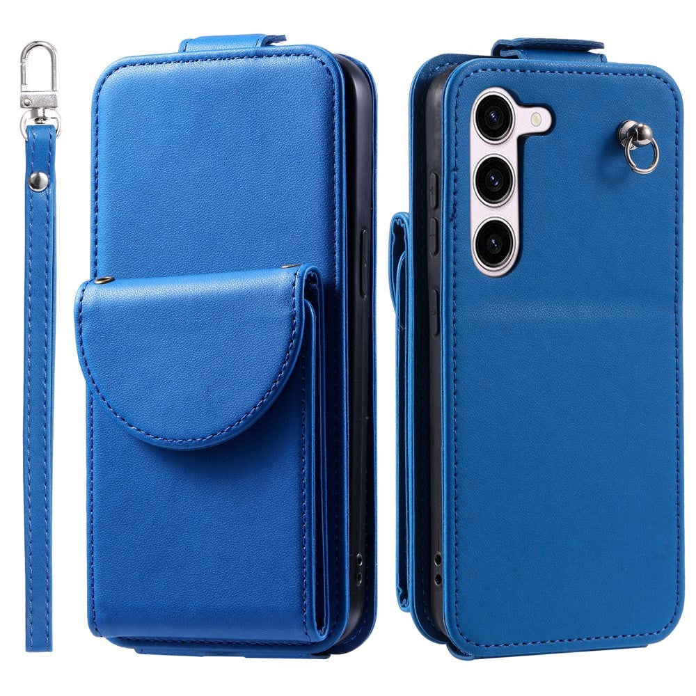 Samsung Galaxy S23 Vertical Faux Leather Flip Case with Wallet / Stand Function / Strap - Blue