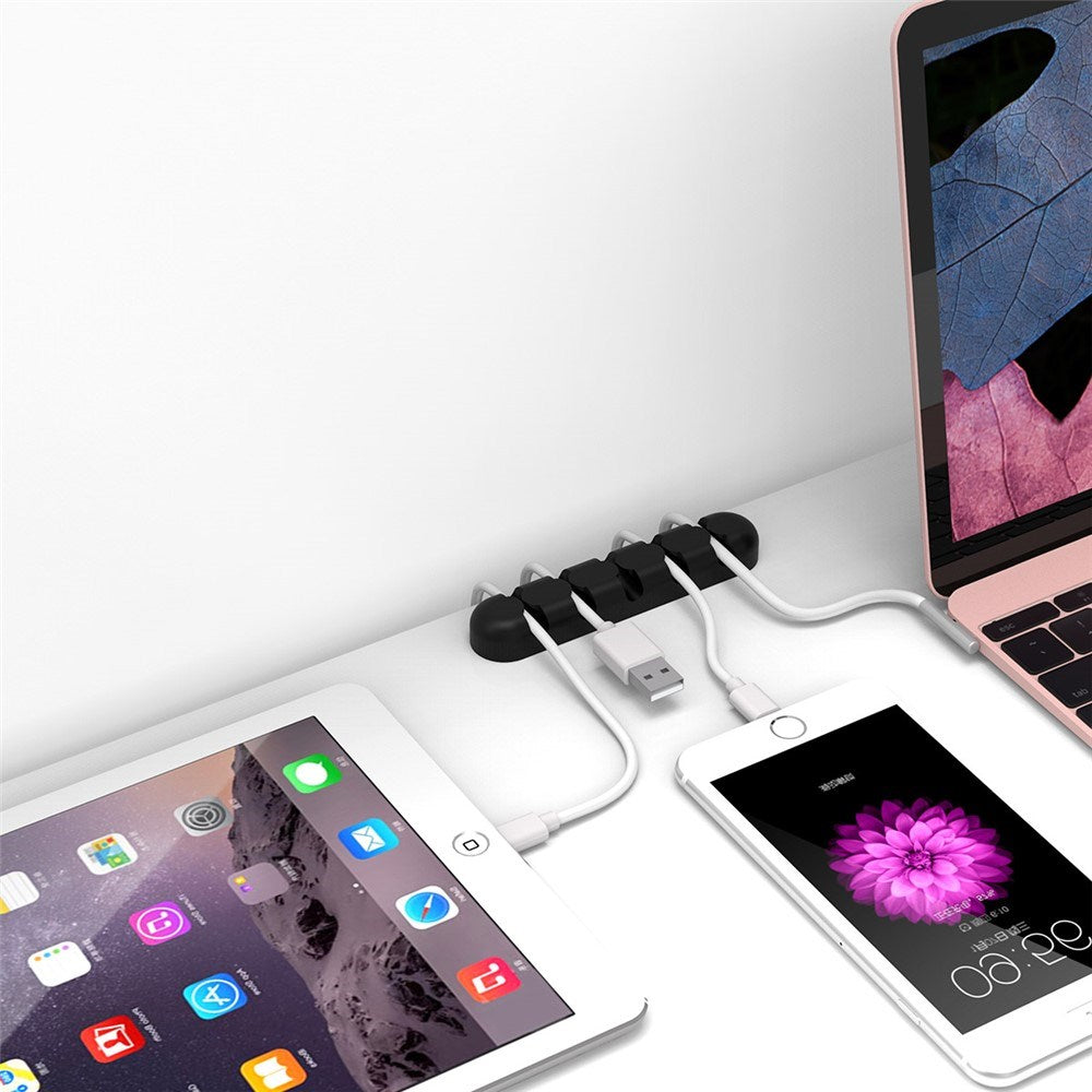 Holderen har fem separate spor, slik at du kan organisere flere kabler samtidig. Den passer til kabler med en diameter på opptil 5 mm, noe som dekker de fleste vanlige kabler.