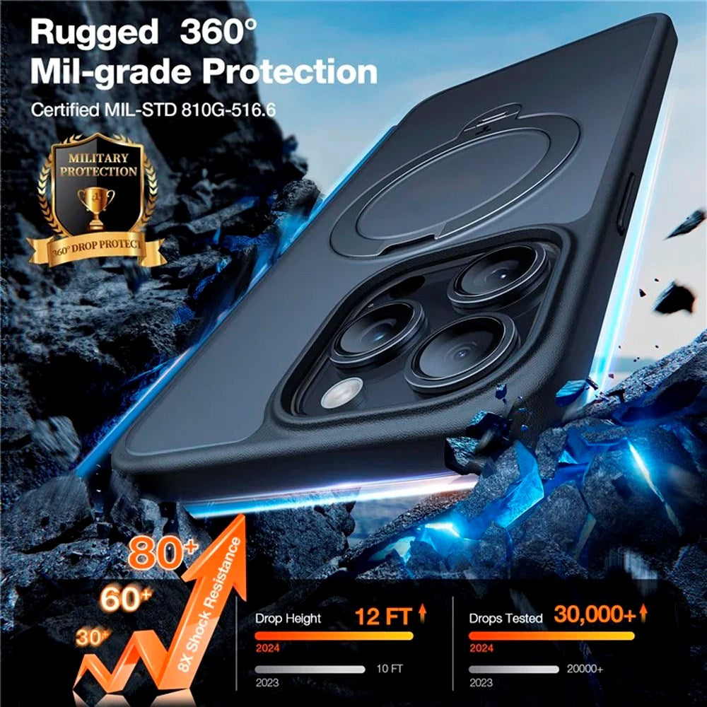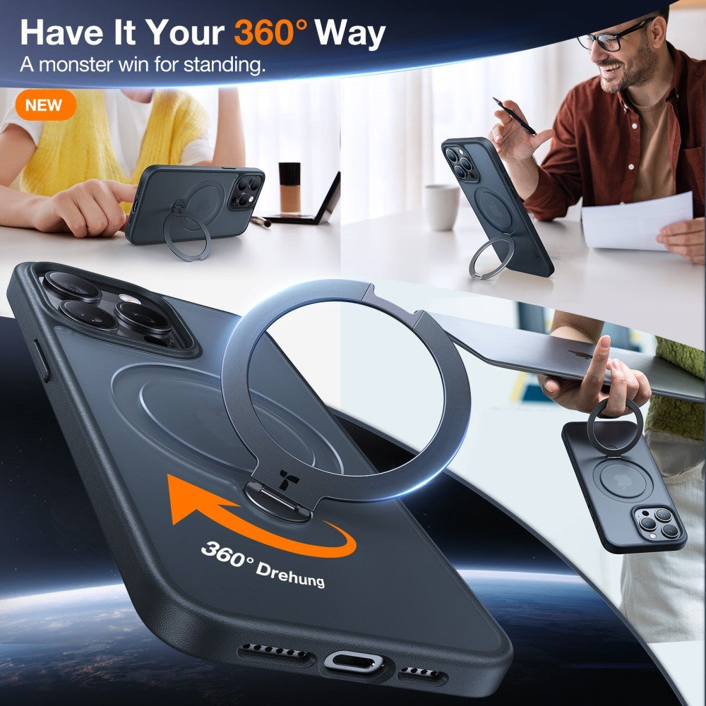 With the built-in 360° stand function, you can place your iPhone 15 Pro at a comfortable, hands-free angle—perfect for video or online meetings.