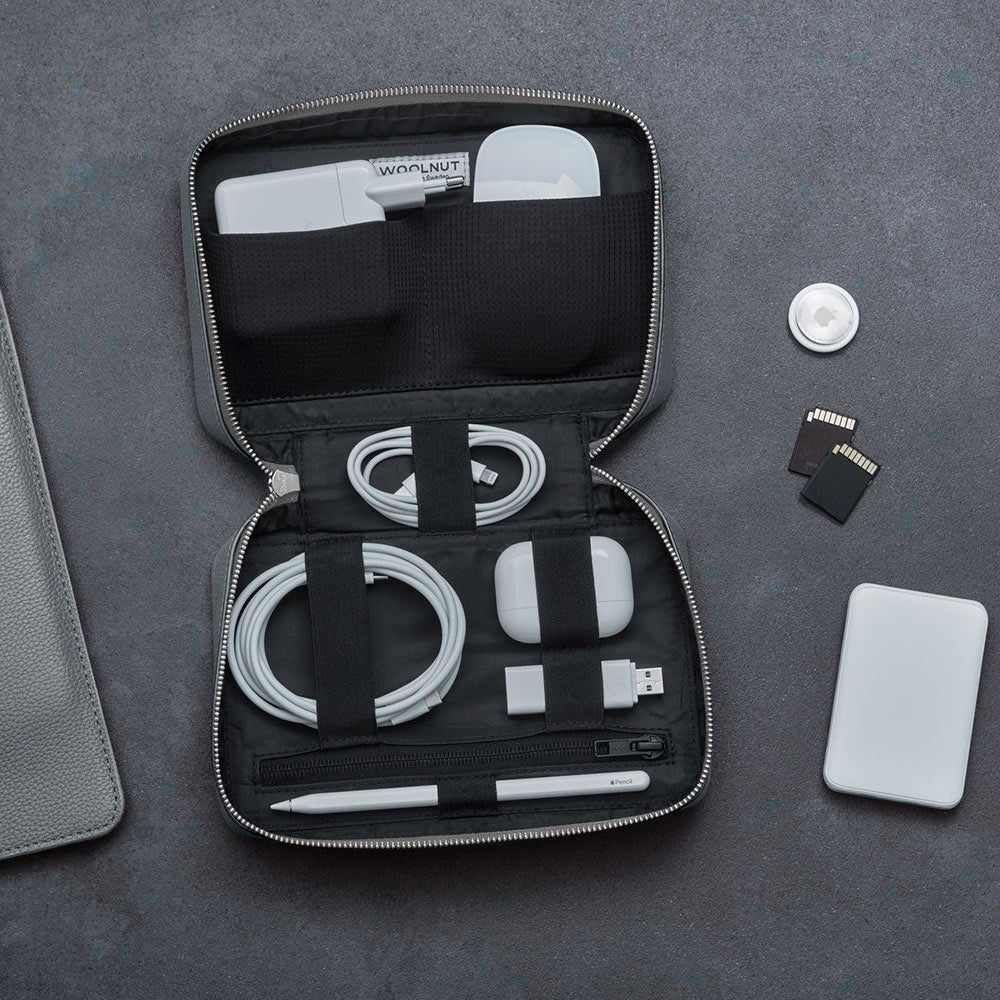 Woolnut Genuine Leather Tech Oganizer - Grey