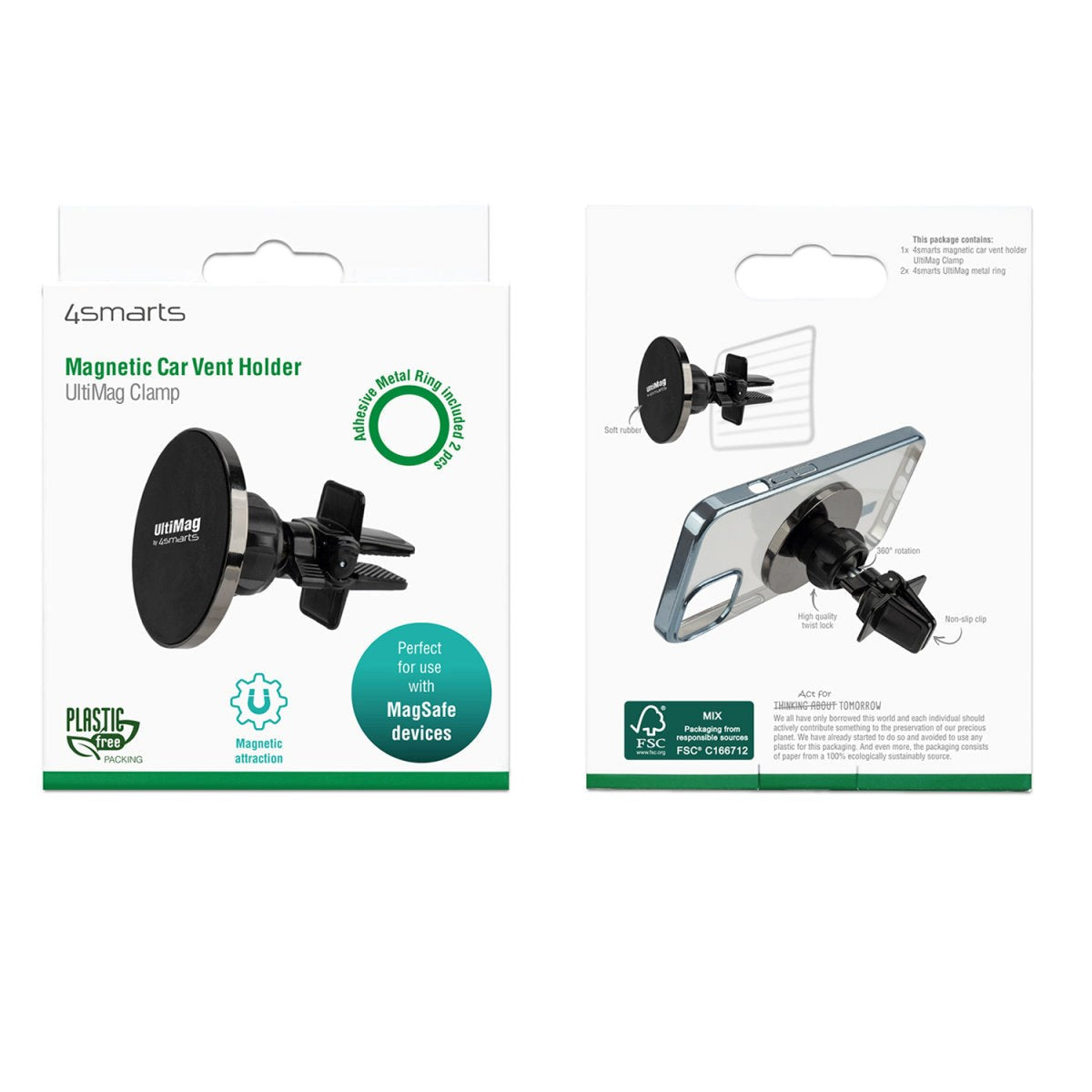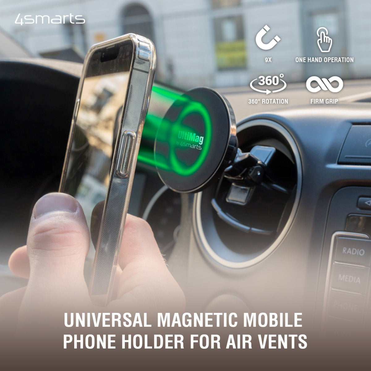 4smarts UltiMag Clamp MagSafe Compatible Phone Holder for Car - Black