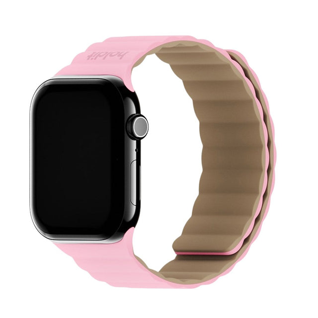 Apple Watch (42/44/SE/45/46/49mm) Holdit Silicone Magnet Watch Strap - Pink / Beige