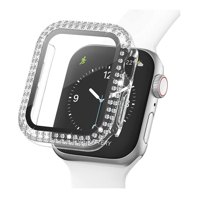 Apple Watch (44mm) Hard Plastic Case w. Built-in Screen Protector - Transparent & Rhinestones